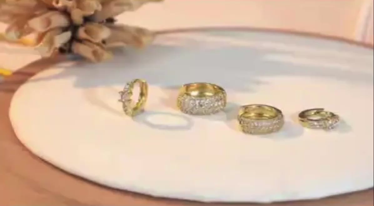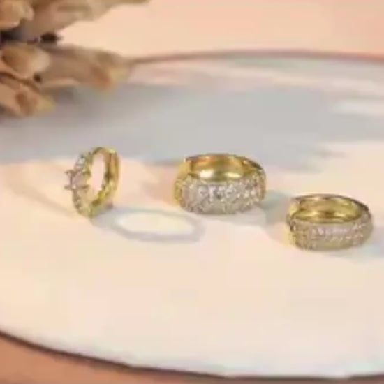 Our Triple Stack Hoops are designed to give the illusion of three perfectly curated earrings in one sleek piece. Featuring a mix of polished gold and pavé-set sparkle, they create a bold yet refined stacked look without the need for multiple piercings.